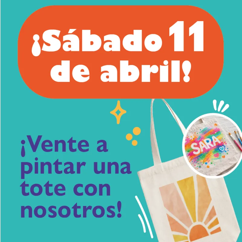 ¡Vente a pintar una tote bag en nuestro taller de Milbby el 11 de abril nuestra tienda en Megapark!
